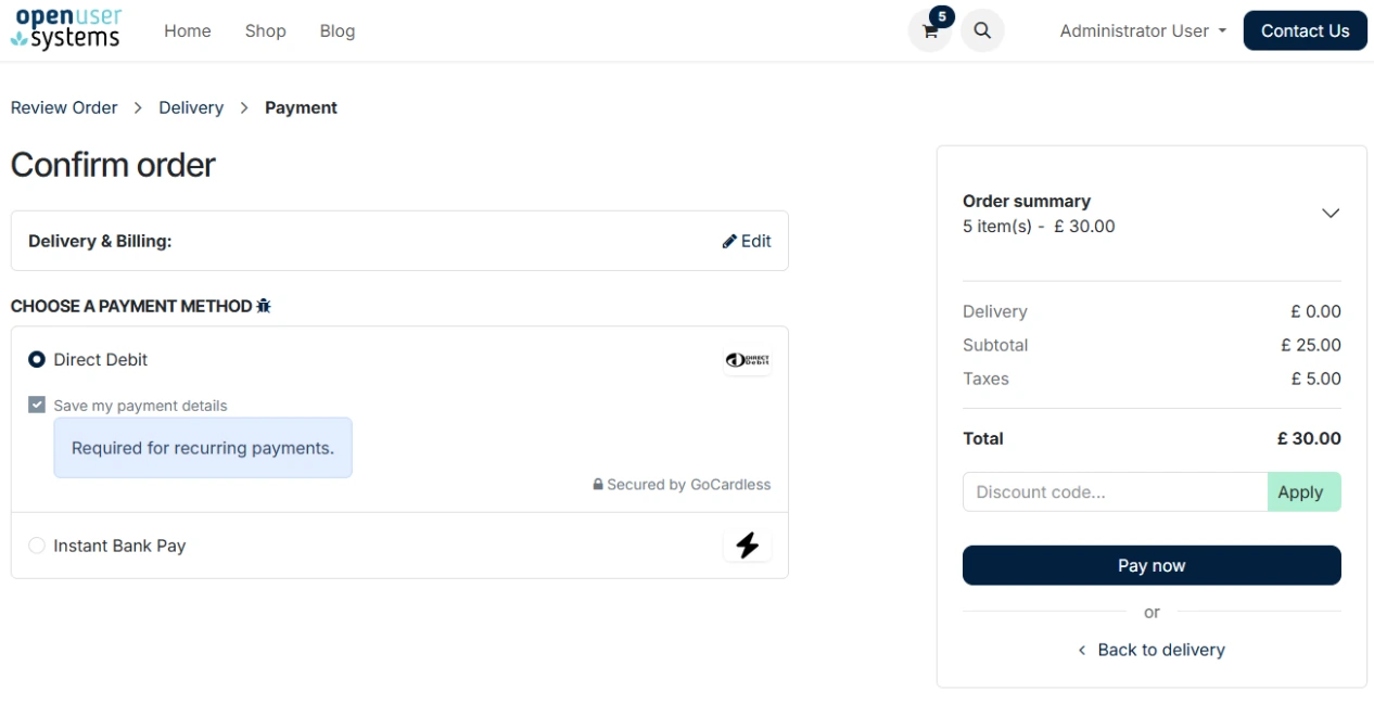 Pay by Direct Debit or Instant Pay (Faster Payments in the UK)